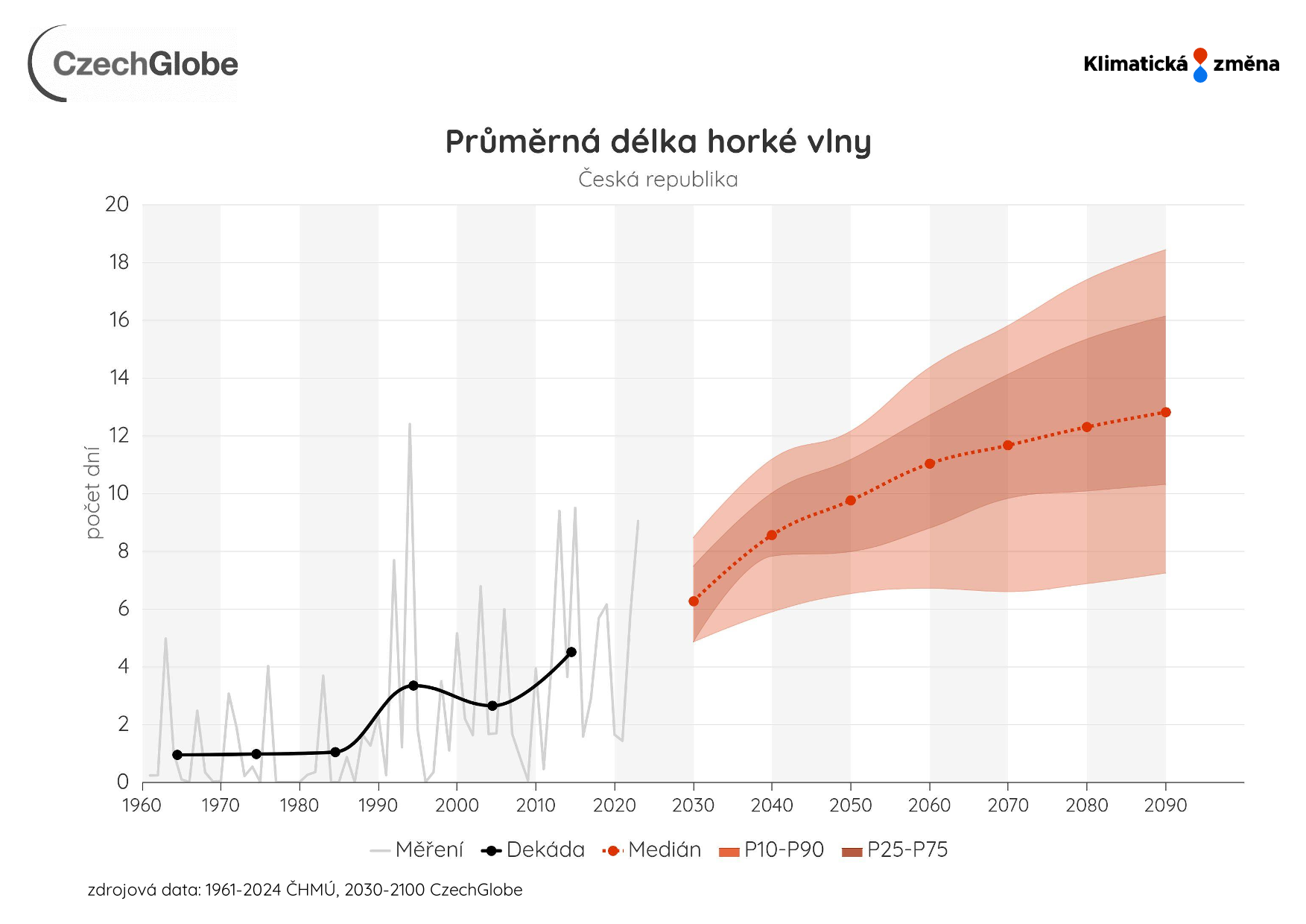 Graf zobrazuje průměrnou délku horké vlny ve dnech.