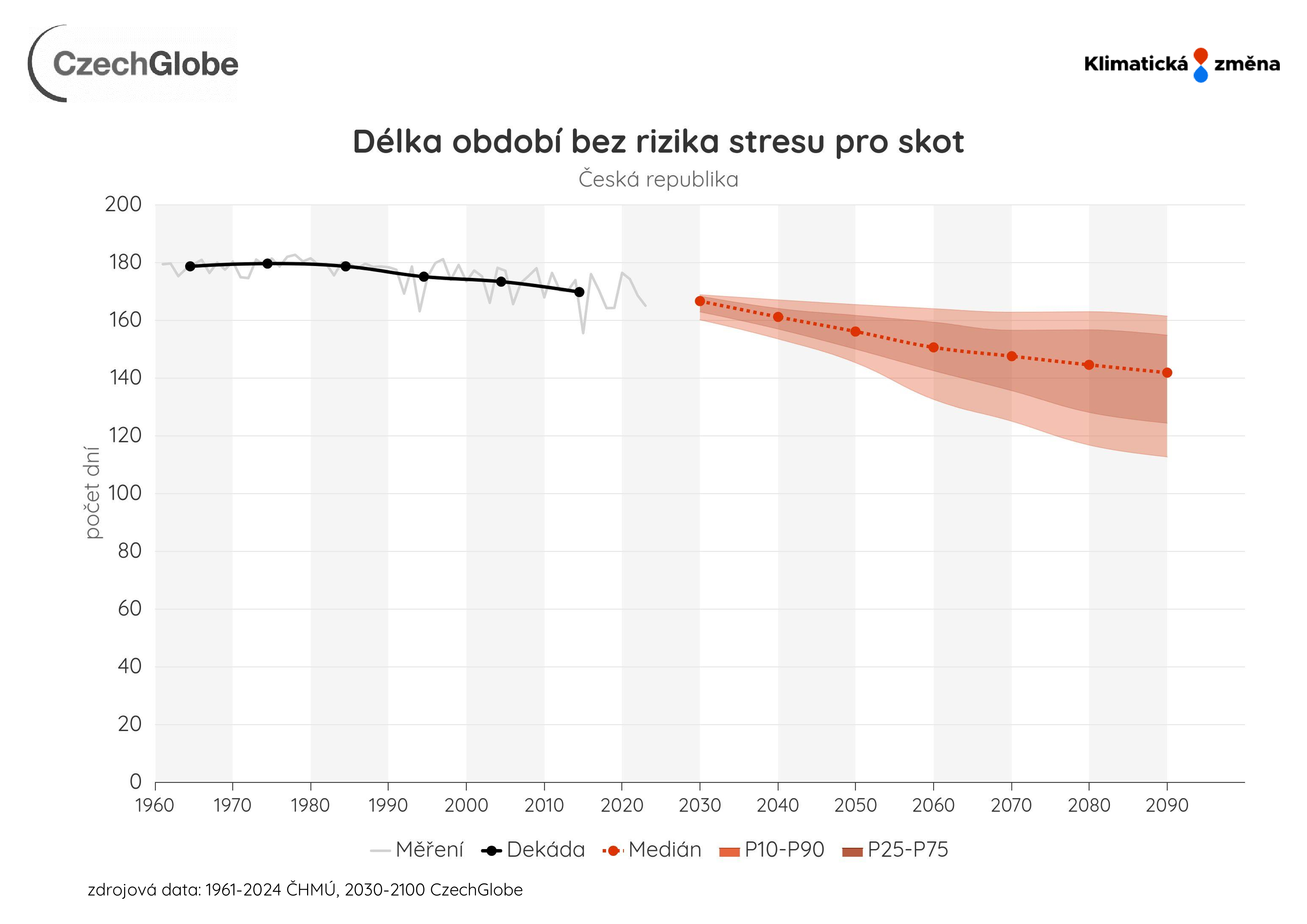 Graf zobrazuje průměrný počet dní za období duben-září s teplotním indexem (pocitovou teplotou) < 22 °C. Pocitová teplota je přepočtena z maximální denní teploty (Tmax) na základě rel. vlhkosti vzduchu.