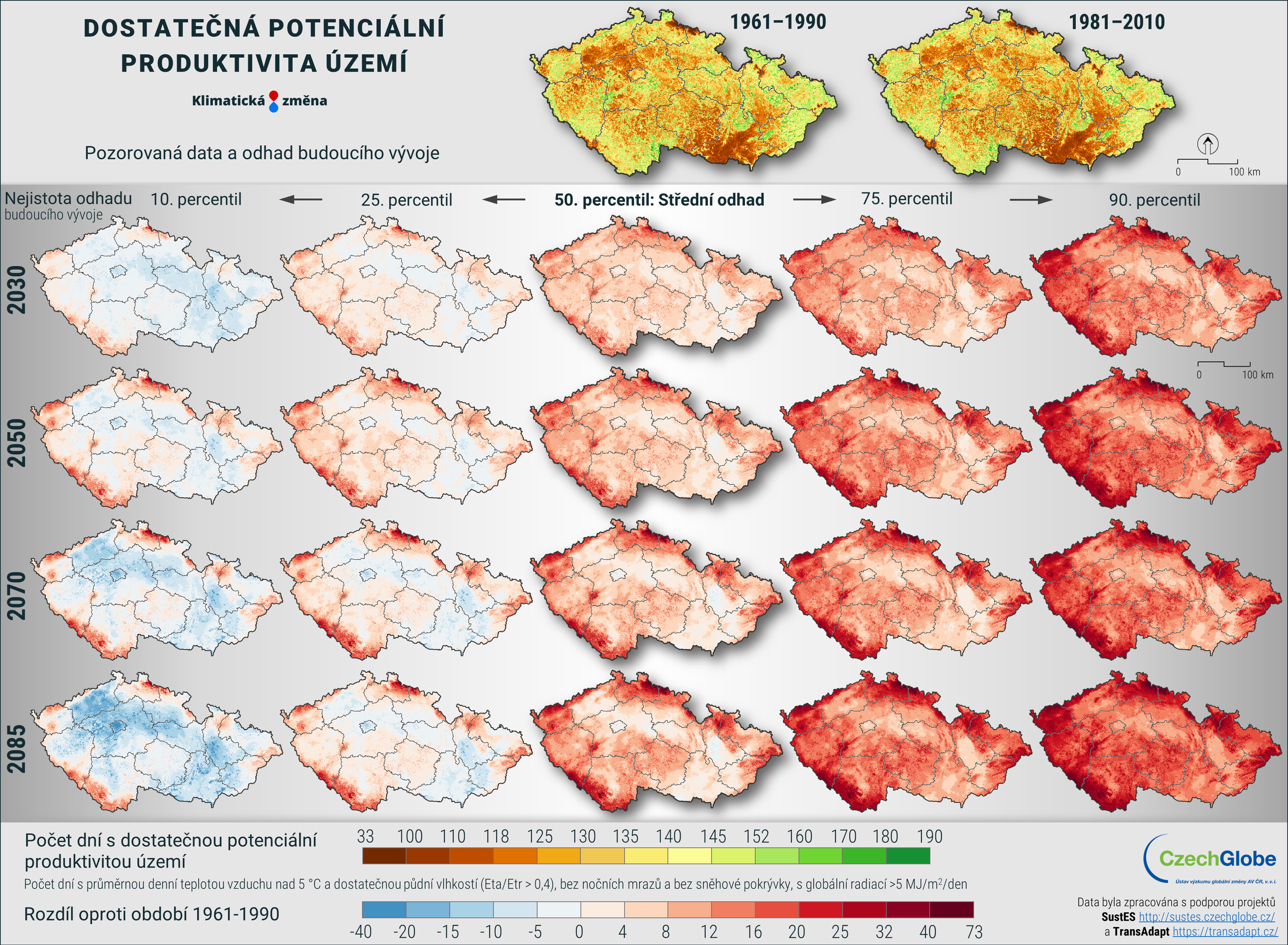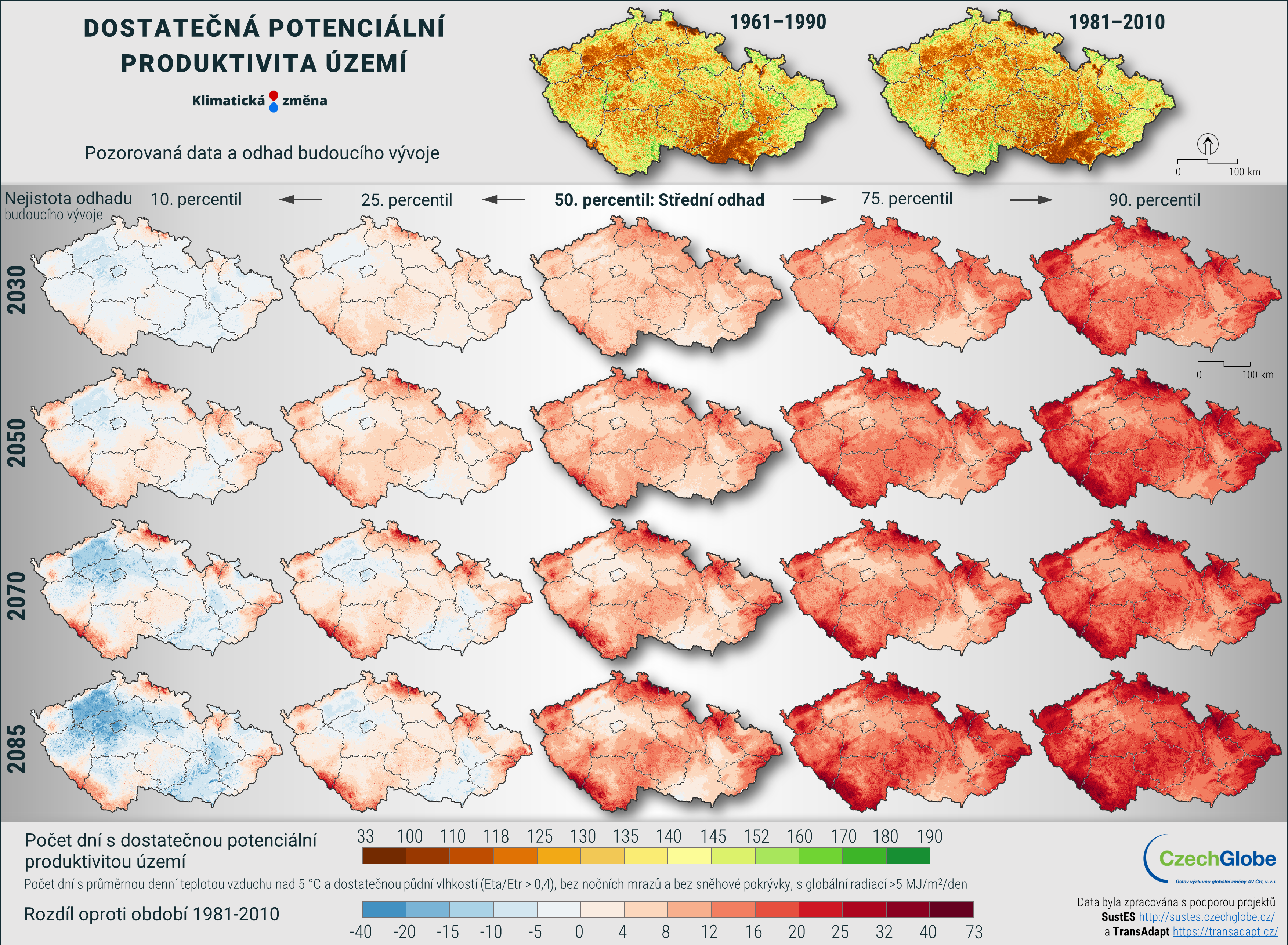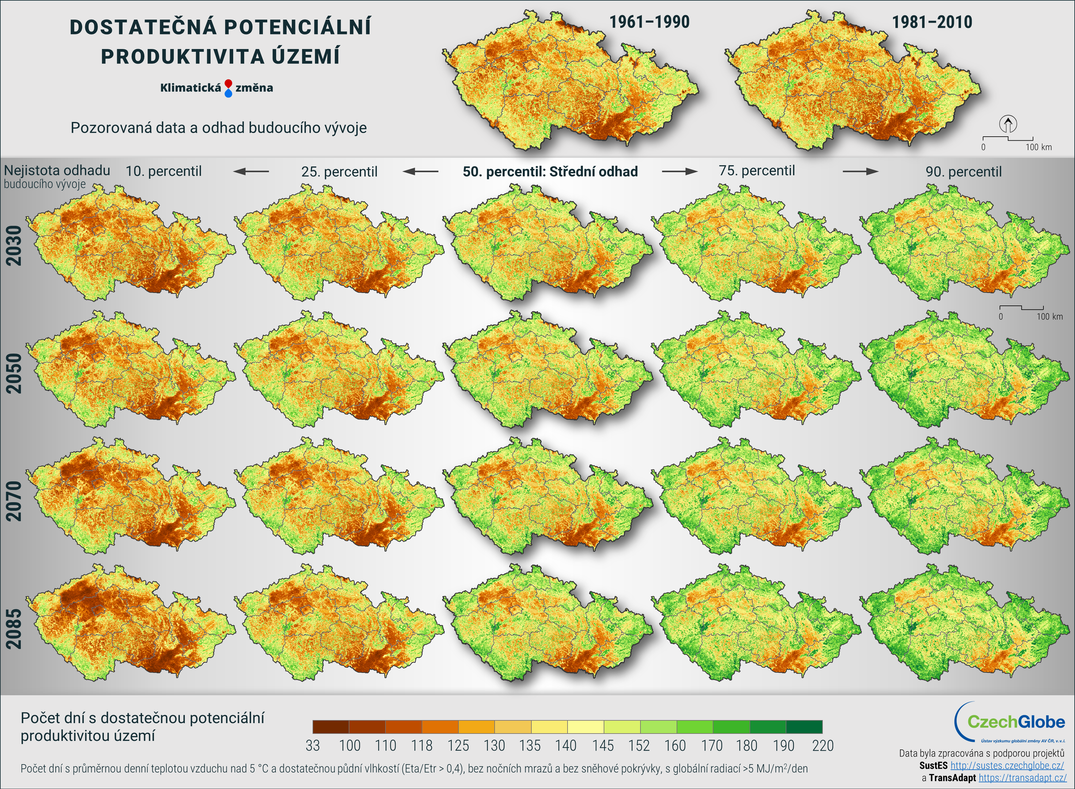 Dostatečná potenciální produktivita území je vyjádřena, jako počet dní s průměrnou denní teplotou vzduchu nad 5 °C a dostatečnou půdní vlhkostí (Eta/Etr > 0,4), bez nočních mrazů a bez sněhové pokrývky, s globální radiací >5 MJ/m2/den.