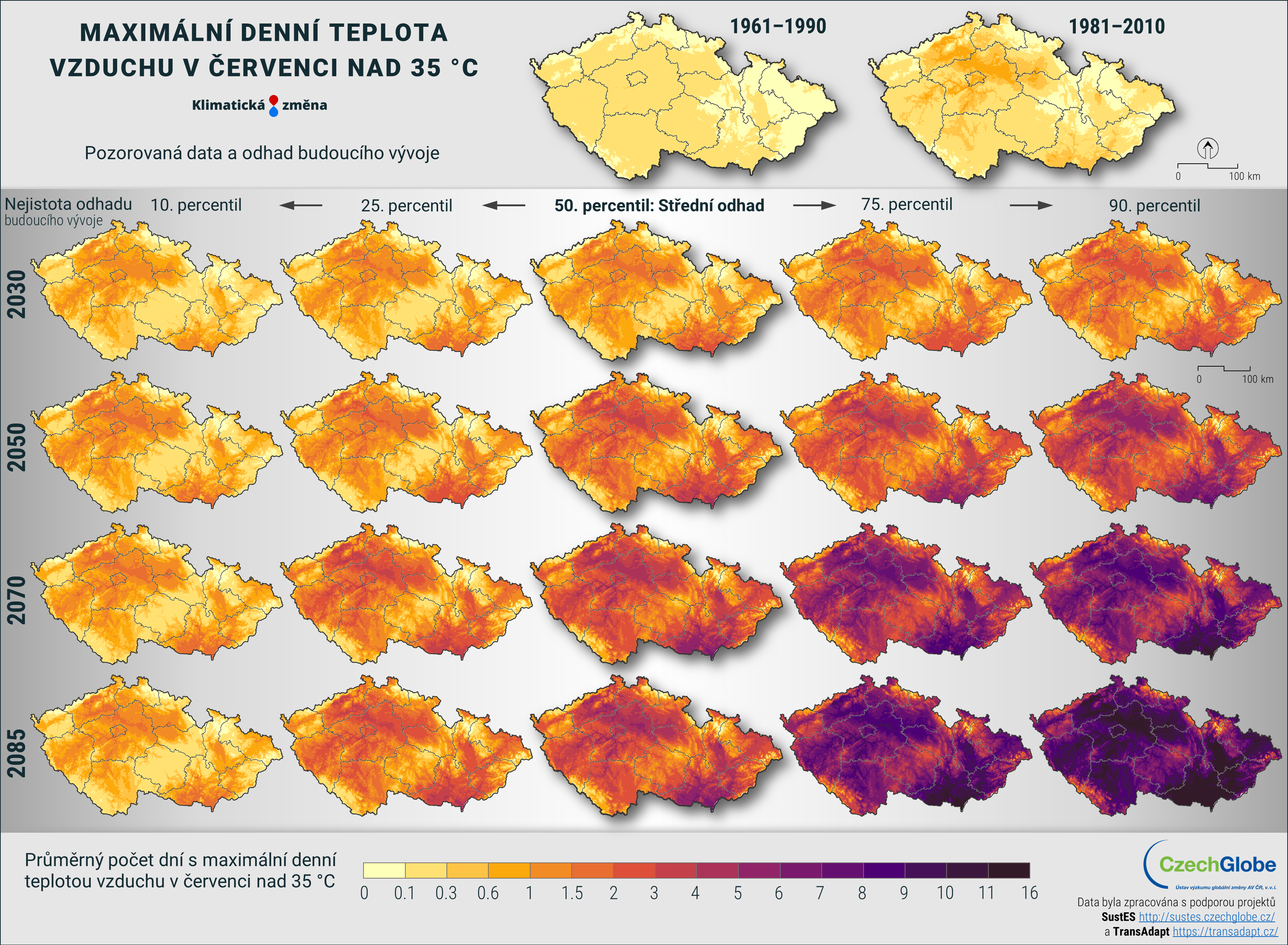 Pro získání robustnějších výsledků jsou jednotlivé modely a scénáře zpracovány ve společném ansámblu, a k dispozici je tak nejpravděpodobnější očekávaná změna, včetně vyjádření nejistoty. Nejistota je konstruována tak, že obsahuje dvě nižší a dvě vyšší úrovně projekcí (například teplejší a chladnější nebo sušší a vlhčí). Tento přístup je aplikován ve všech mapových i grafických výstupech. Nejpravděpodobnější scénář reprezentuje největší shodu na očekávané změně ze všech použitých klimatických modelů.