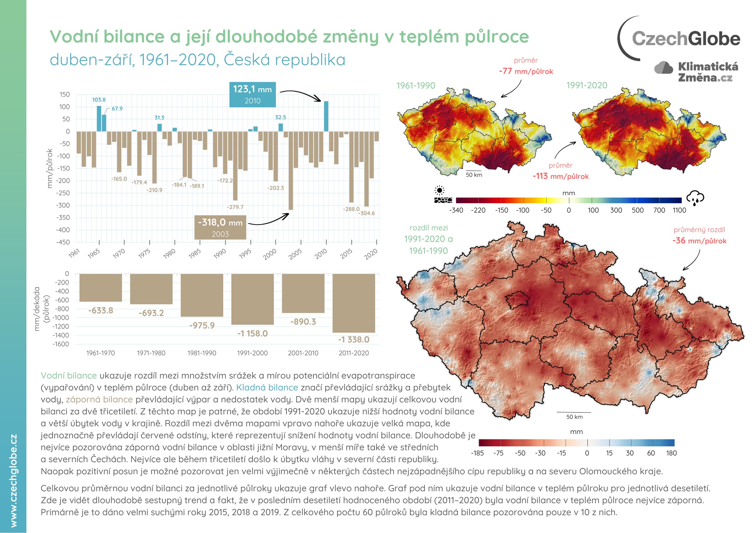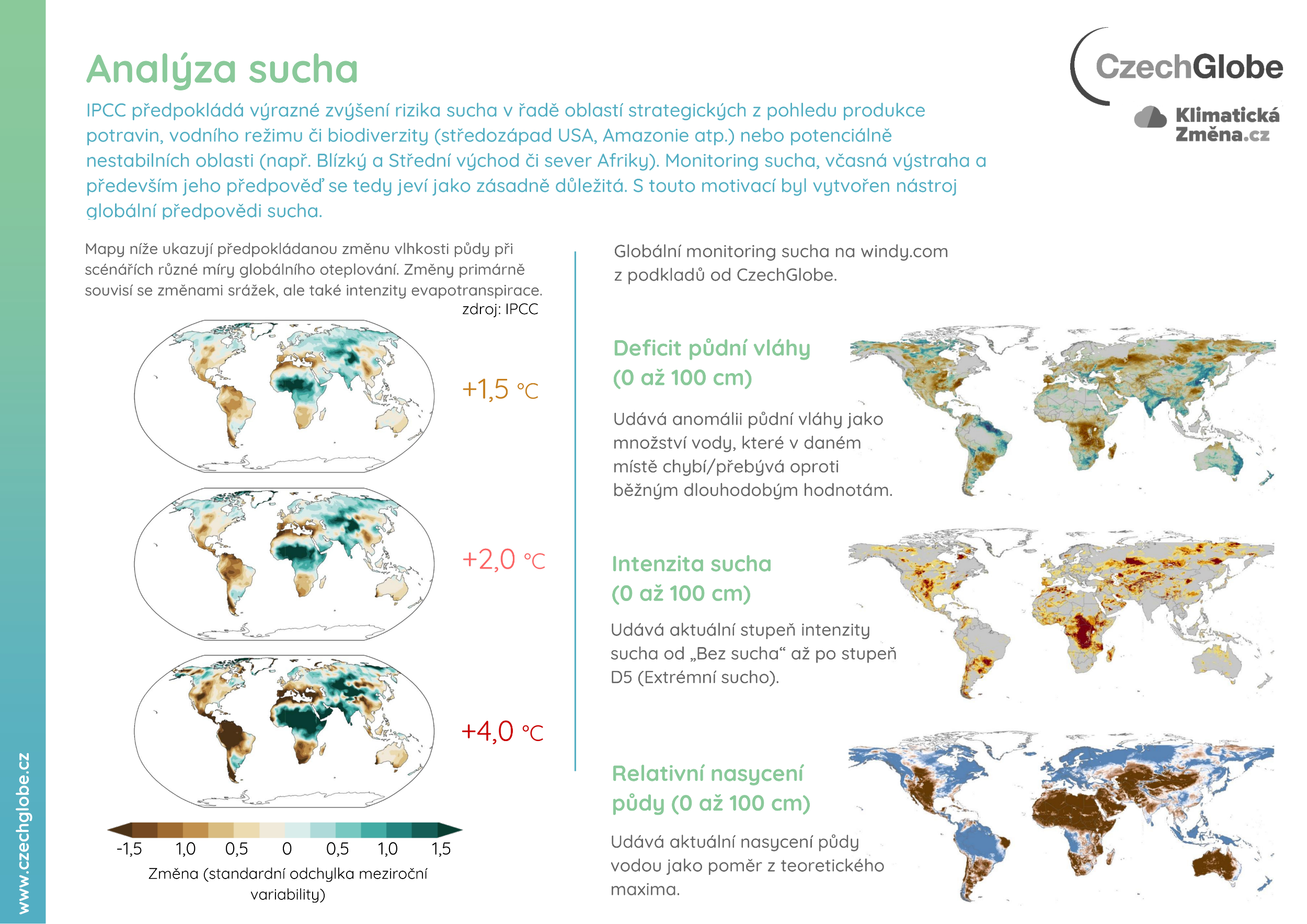 Infografiky popisující sucho a vodní bilanci