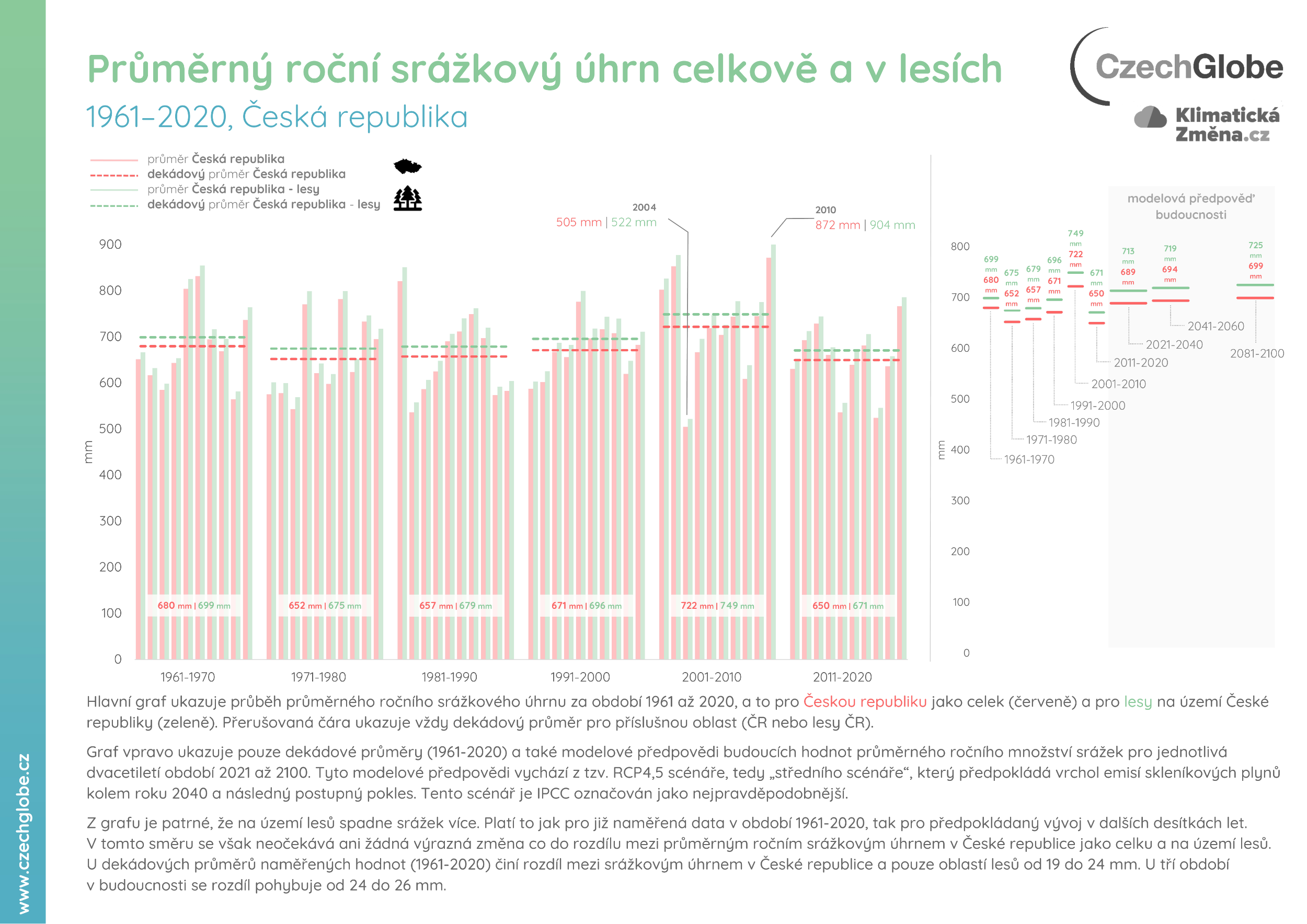 Infografiky popisující změny srážkových úhrnů