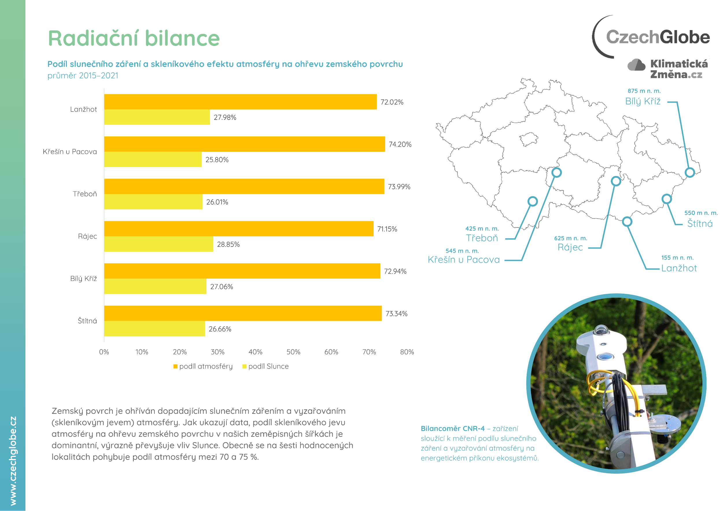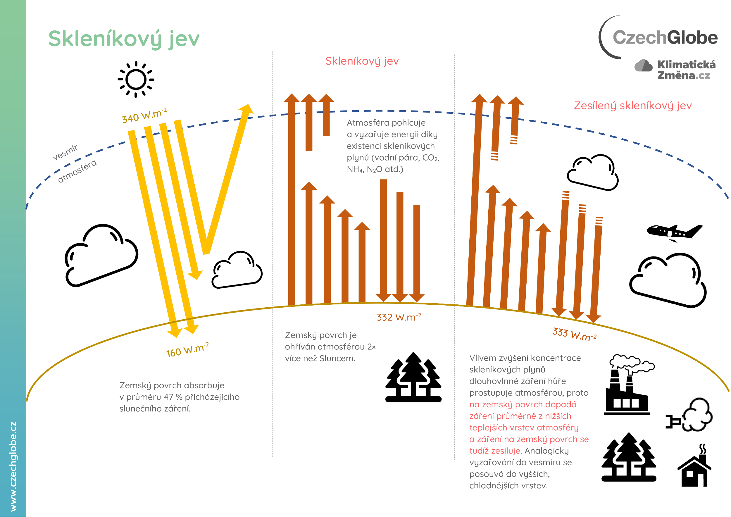 Infografiky popisující skleníkový jev a radiační bilanci