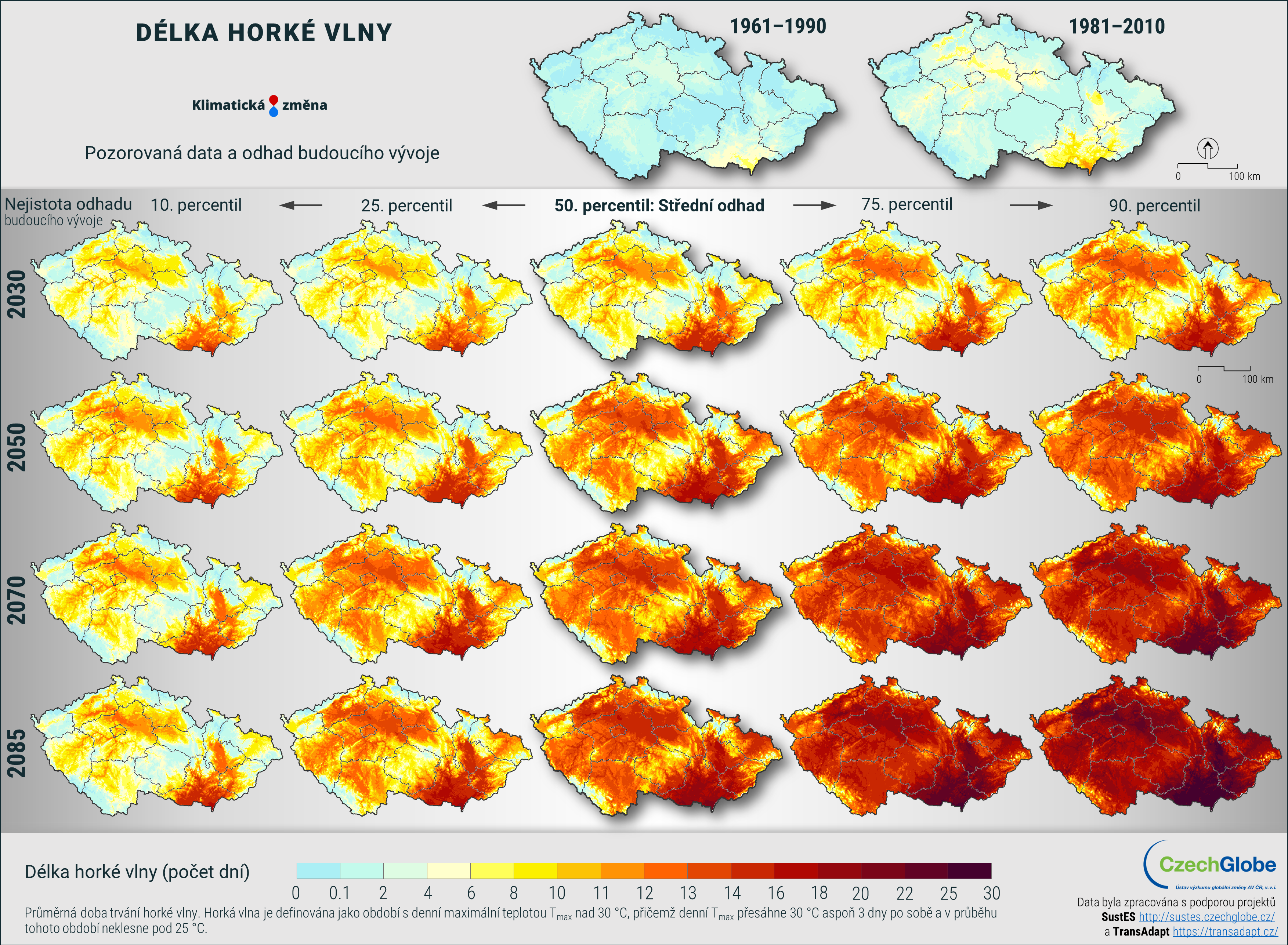 Průměrná doba trvání horké vlny je definována jako období s denní maximální teplotou nad 30 °C, přičemž tato denní maximální teplota přesáhne 30 °C aspoň 3 dny po sobě a v průběhu tohoto období neklesne pod 25 °C.