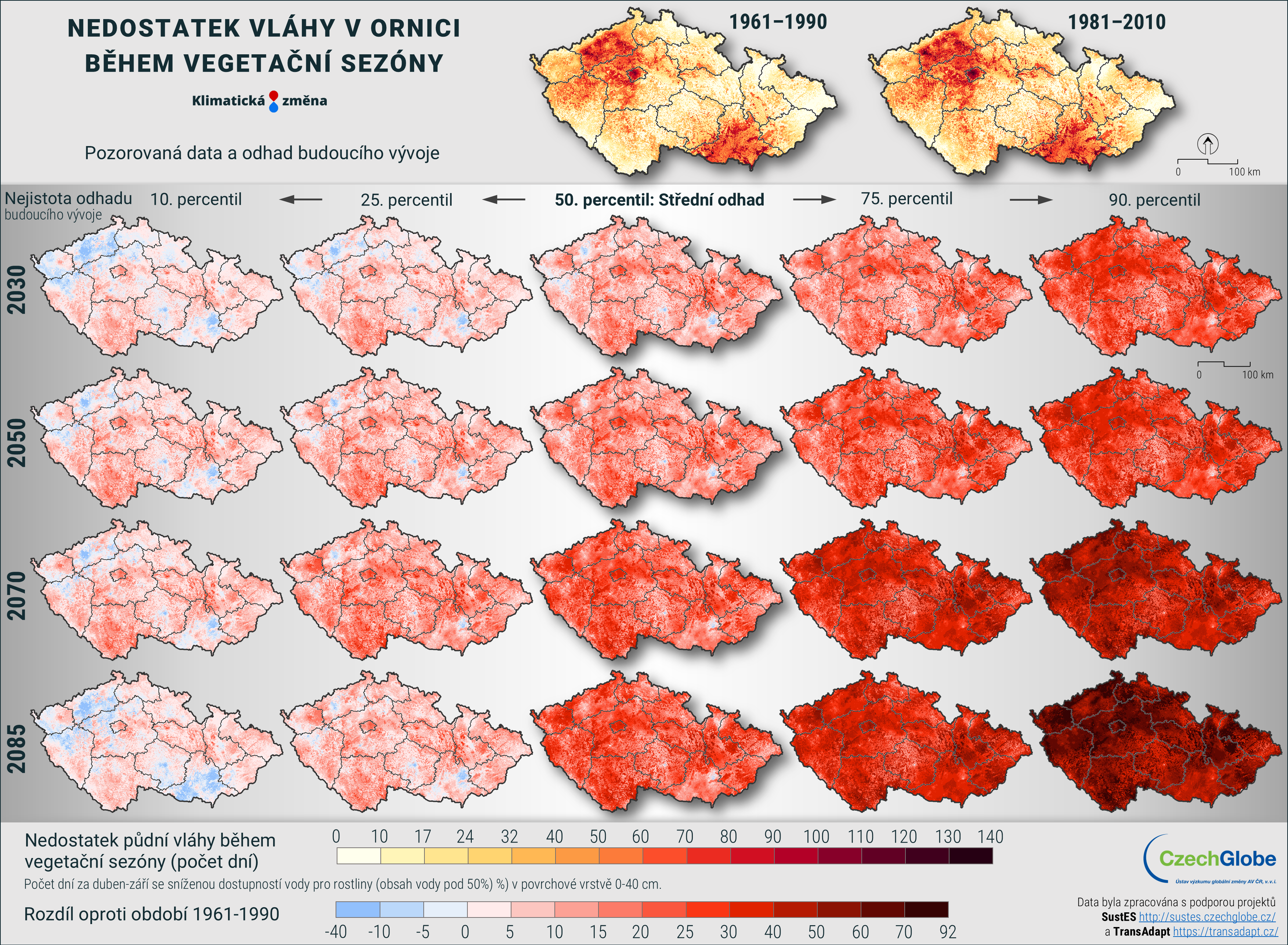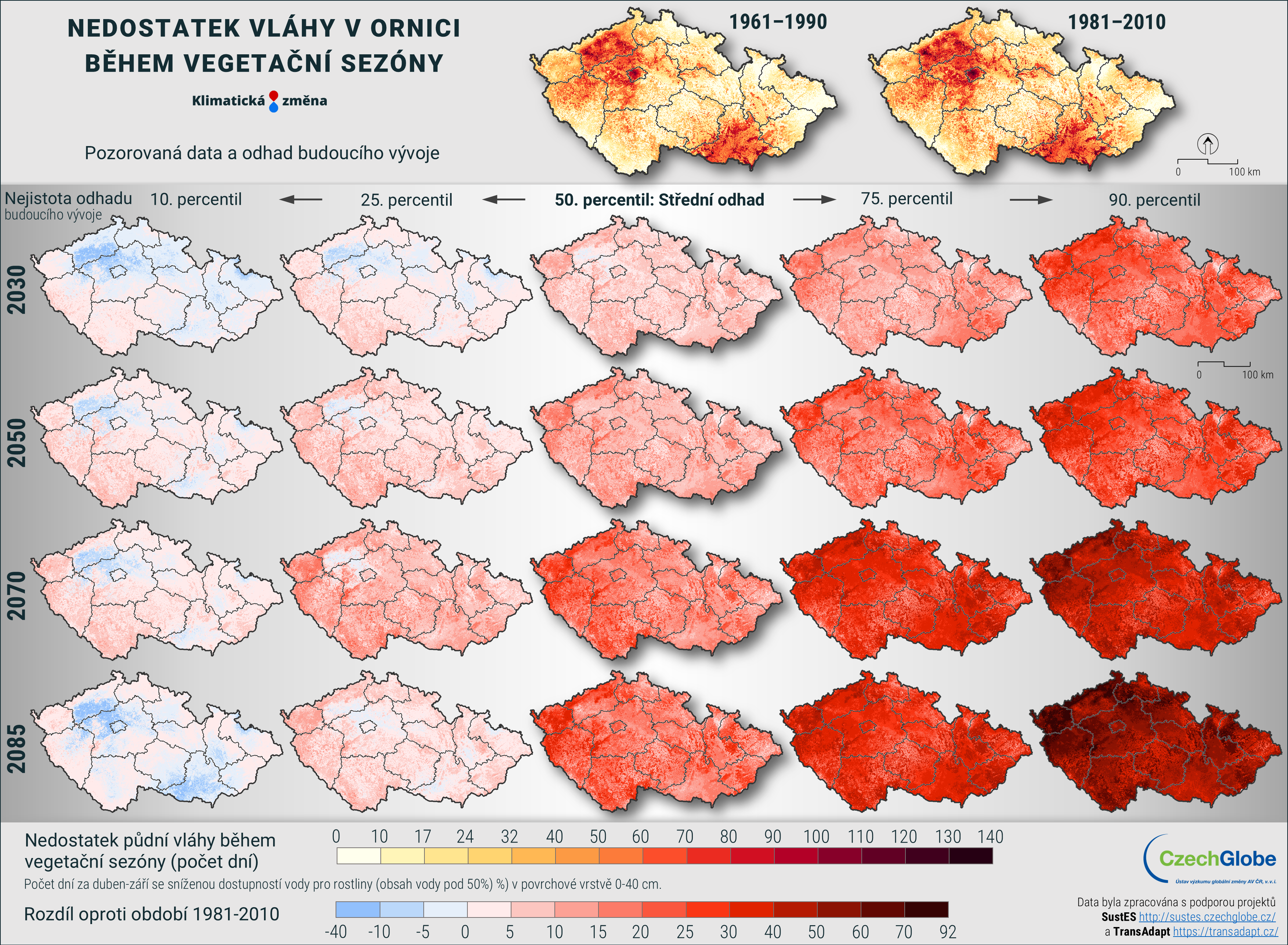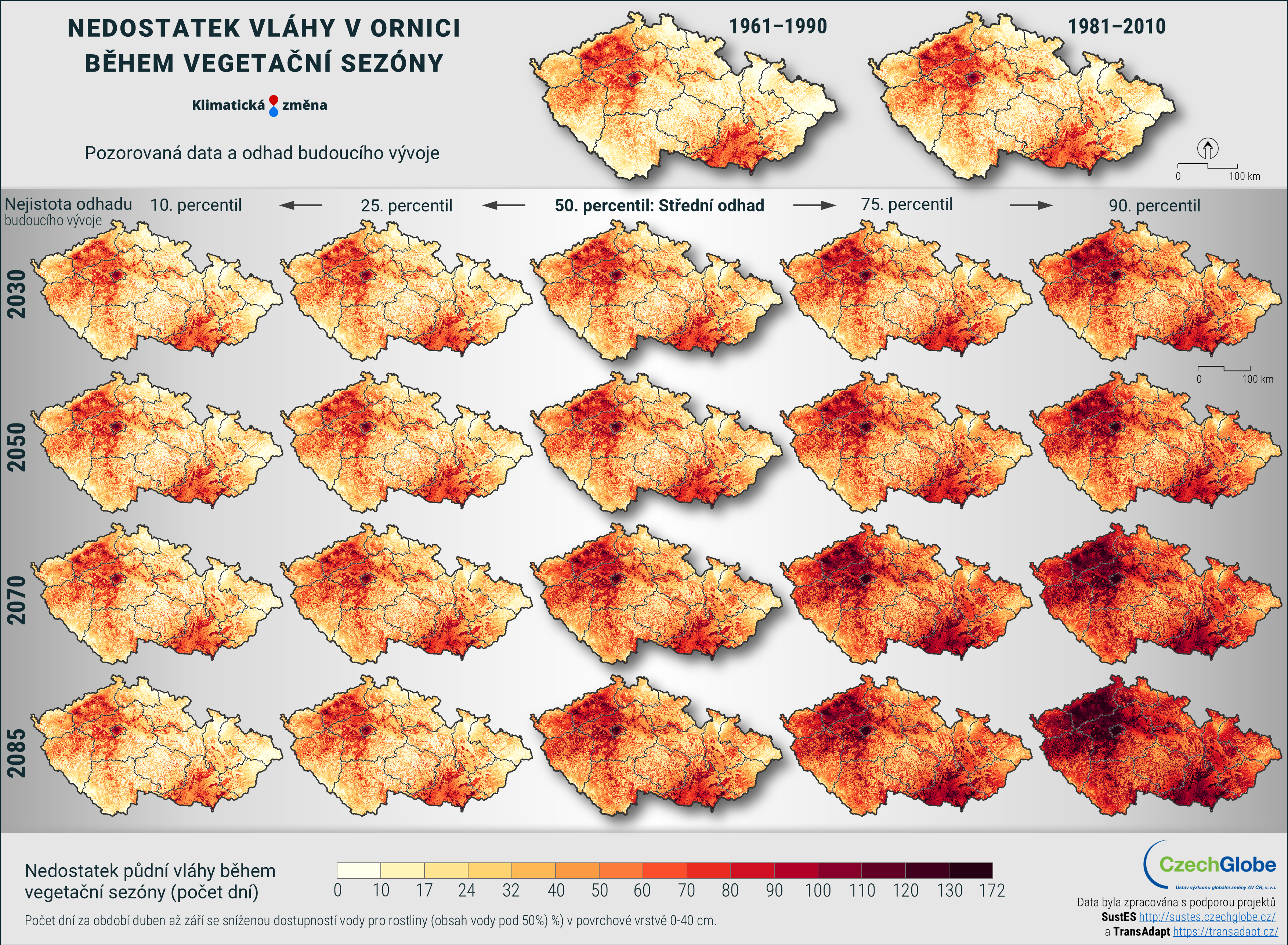 Nedostatek vláhy v ornici je vyjádřen jako počet dní během vegetačního období (duben až září) se sníženou dostupností vody pro rostliny (obsah vody pod 50%) v povrchové vrstvě 0-40 cm.