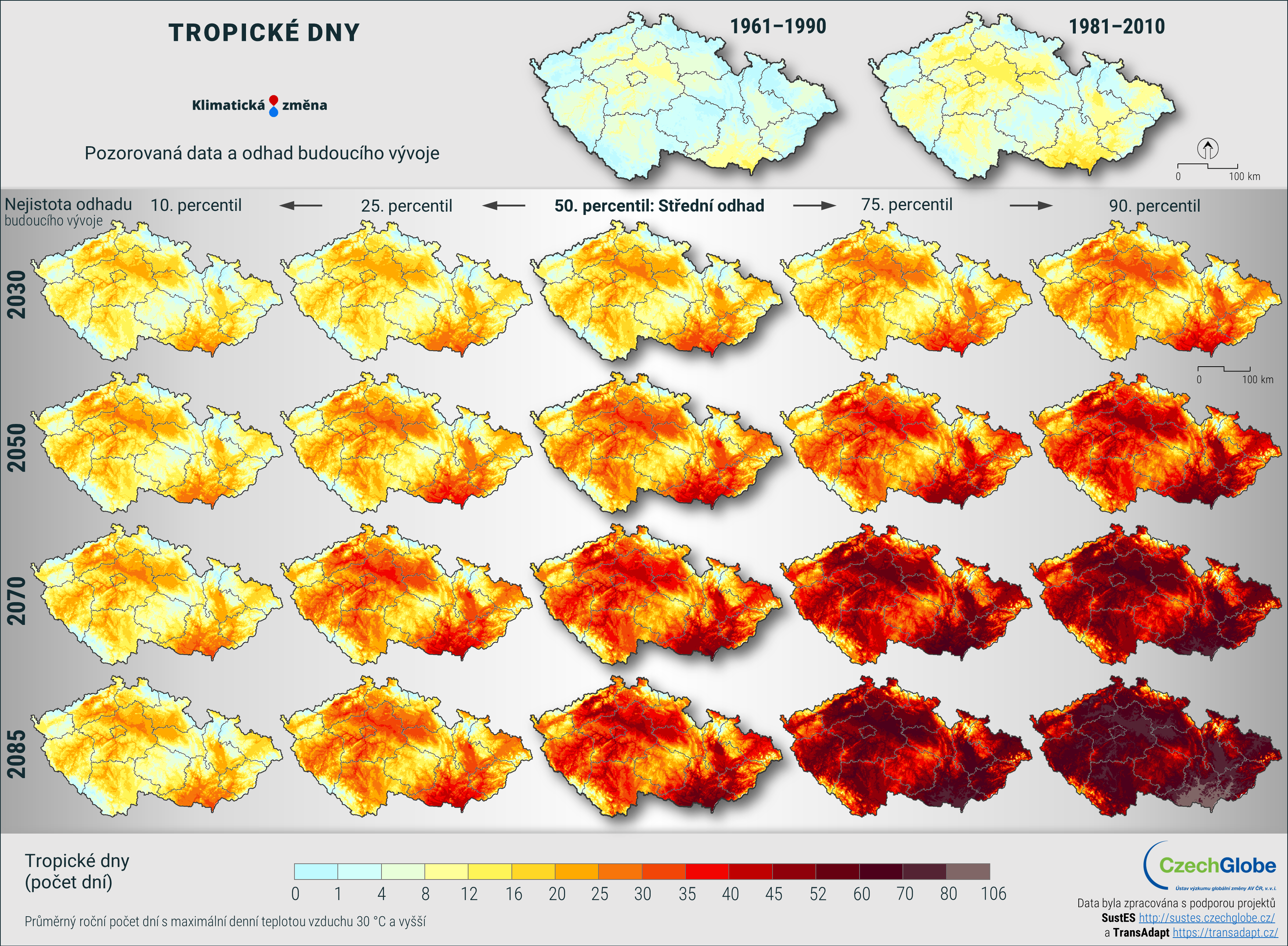 Mapa zobrazuje průměrný roční počet dní s maximální denní teplotou vzduchu 30 °C a vyšší.