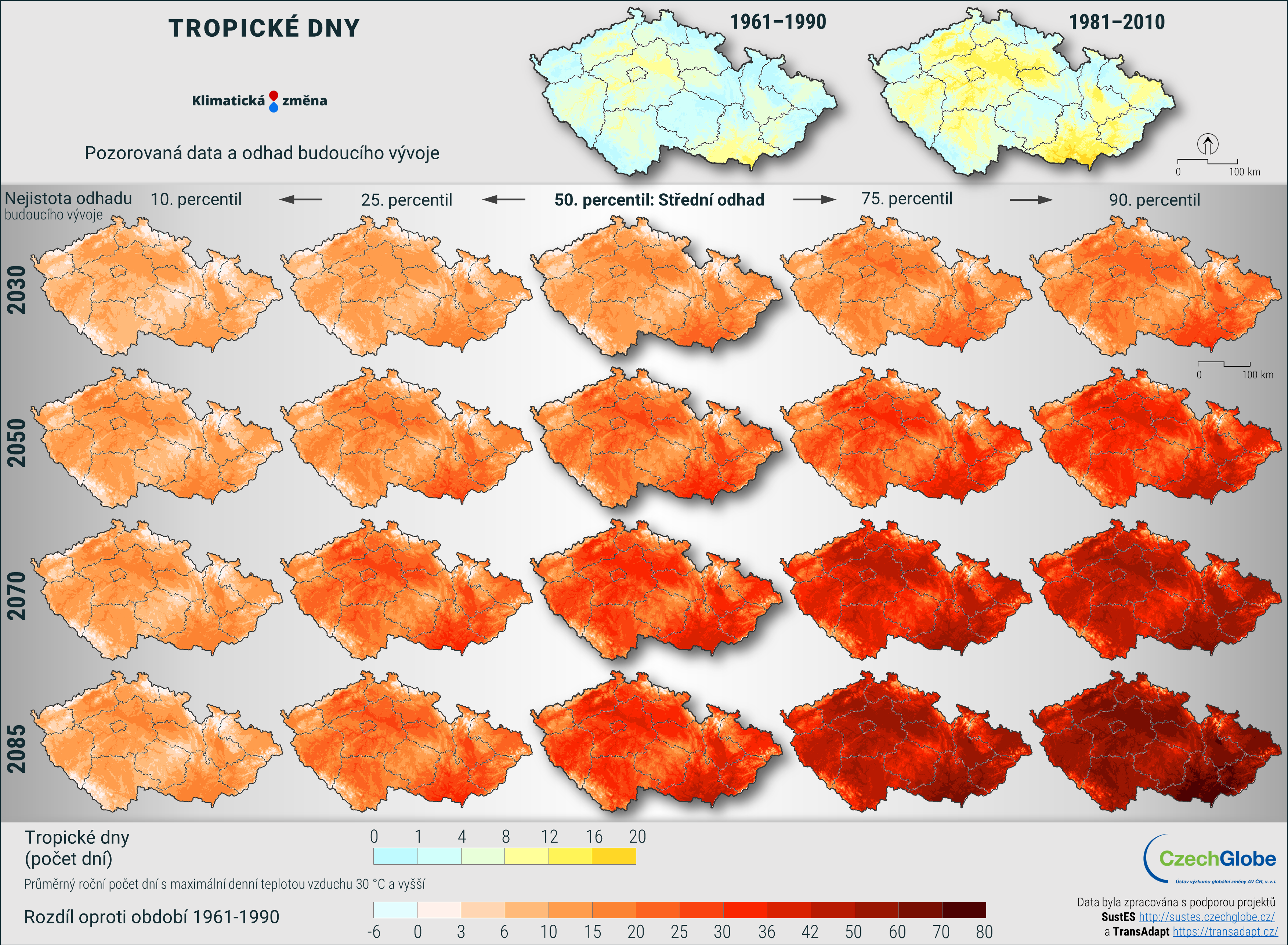 Pravděpodobný budoucí vývoj je znázorněn i pomocí tzv. diferencí. Tedy rozdílu hodnot oproti předcházejícím obdobím. Konkrétně zde je možnost sledovat dvě diferenční období: 1961-1990 a 1981-2010. Díky těmto informacím můžeme vidět reálnou očekávanou změnu např. vůči 30-ti letému období 1981-2010 (tedy např. navýšení teploty v roce 2050 o 2 °C a ke konci století o 3,1 °C v nejpravděpodobnějším scénáři).