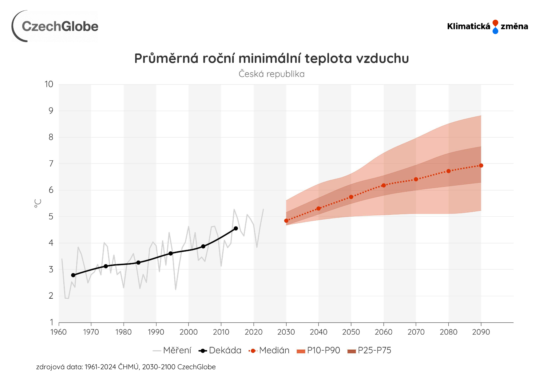 Průměrná roční minimální teplota vzduchu v grafu