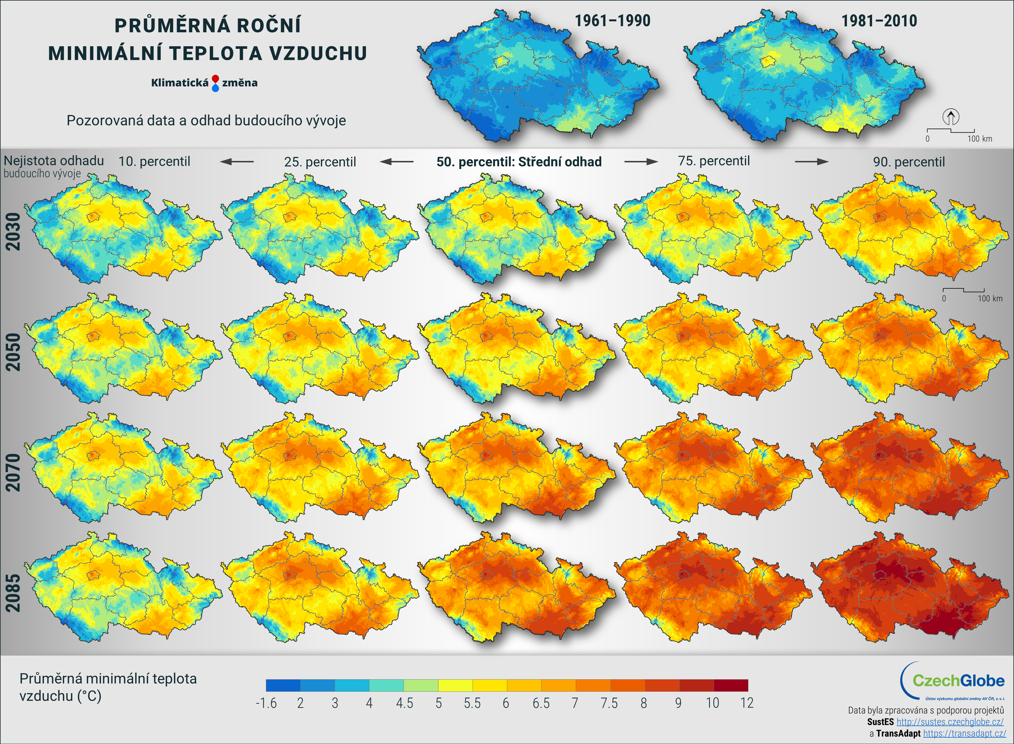 Pro získání robustnějších výsledků jsou jednotlivé modely a scénáře zpracovány ve společném ansámblu, a k dispozici je tak nejpravděpodobnější očekávaná změna, včetně vyjádření nejistoty. Nejistota je konstruována tak, že obsahuje dvě nižší a dvě vyšší úrovně projekcí (například teplejší a chladnější nebo sušší a vlhčí). Tento přístup je aplikován ve všech mapových i grafických výstupech. Nejpravděpodobnější scénář reprezentuje největší shodu na očekávané změně ze všech použitých klimatických modelů.