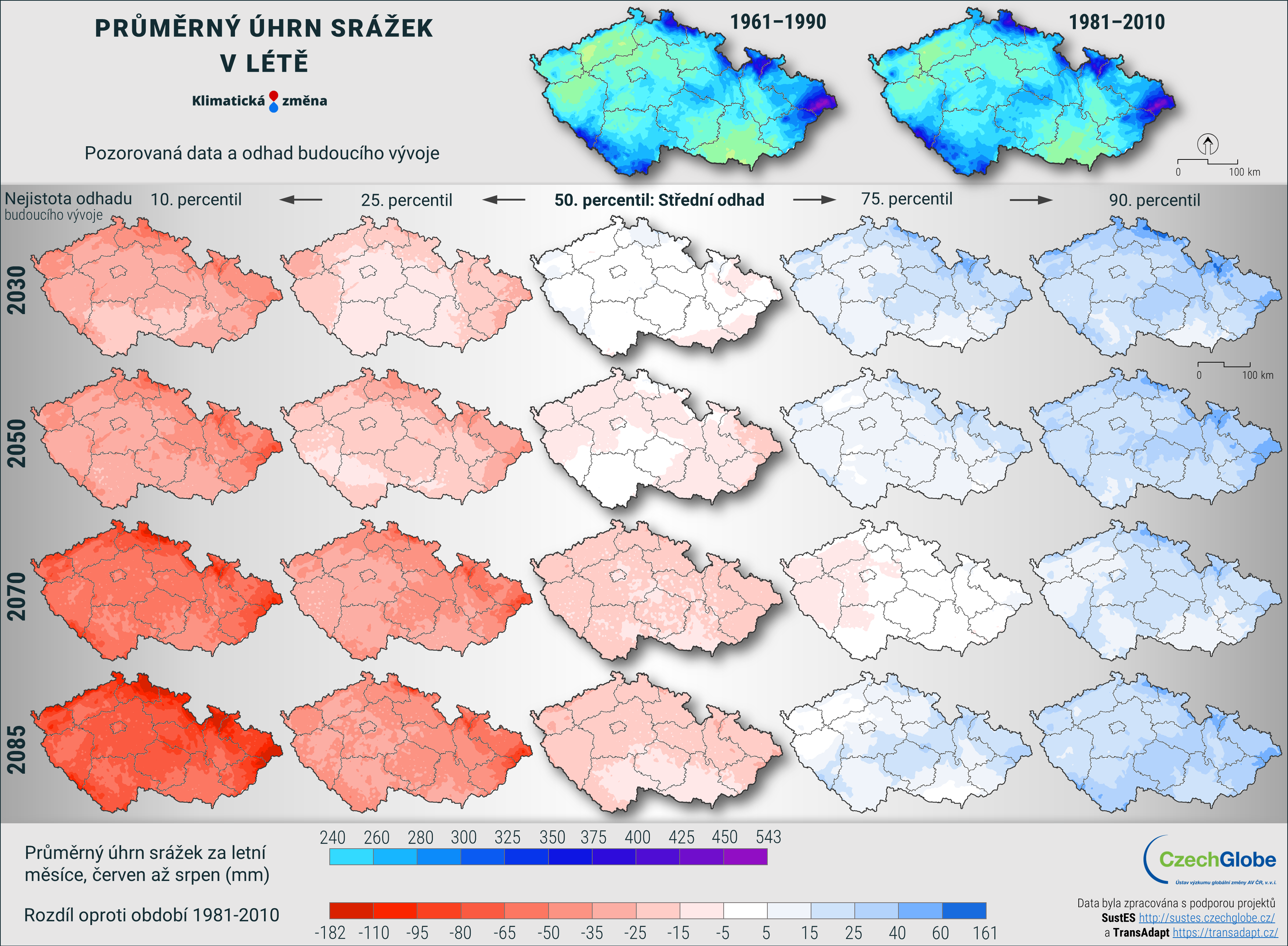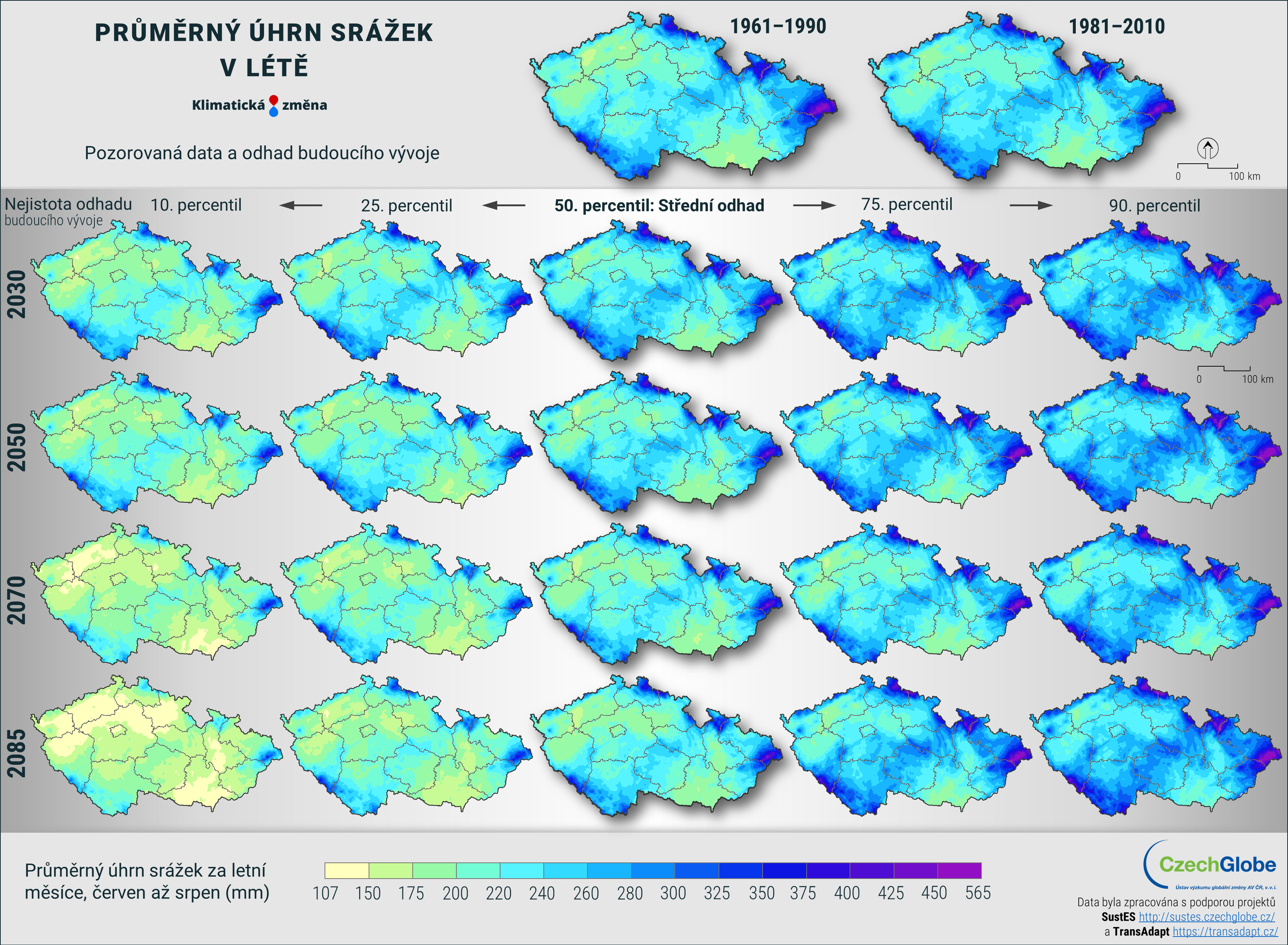 Pro získání robustnějších výsledků jsou jednotlivé modely a scénáře zpracovány ve společném ansámblu, a k dispozici je tak nejpravděpodobnější očekávaná změna, včetně vyjádření nejistoty. Nejistota je konstruována tak, že obsahuje dvě nižší a dvě vyšší úrovně projekcí (například teplejší a chladnější nebo sušší a vlhčí). Tento přístup je aplikován ve všech mapových i grafických výstupech. Nejpravděpodobnější scénář reprezentuje největší shodu na očekávané změně ze všech použitých klimatických modelů.