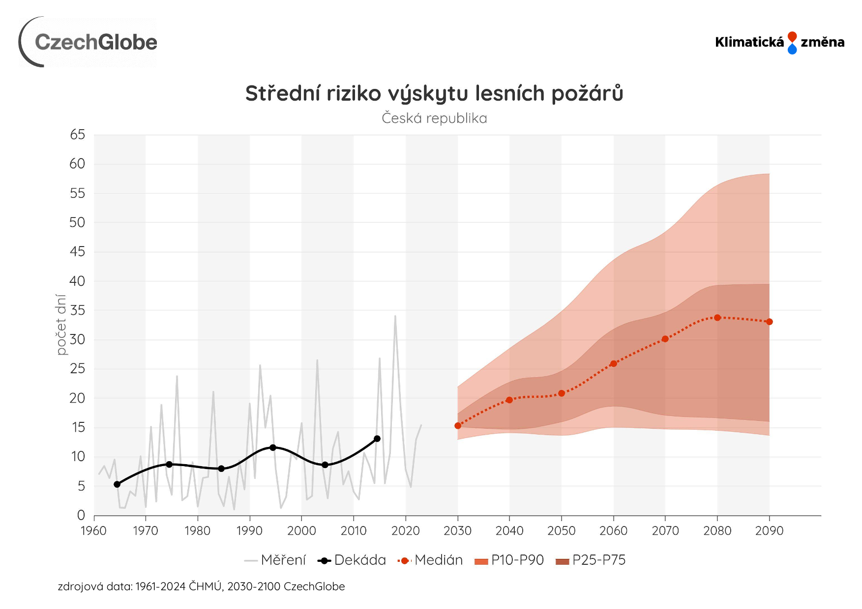 Graf zobrazuje průměrný počet dní za rok s výskytem kategorie 3 (= střední riziko).