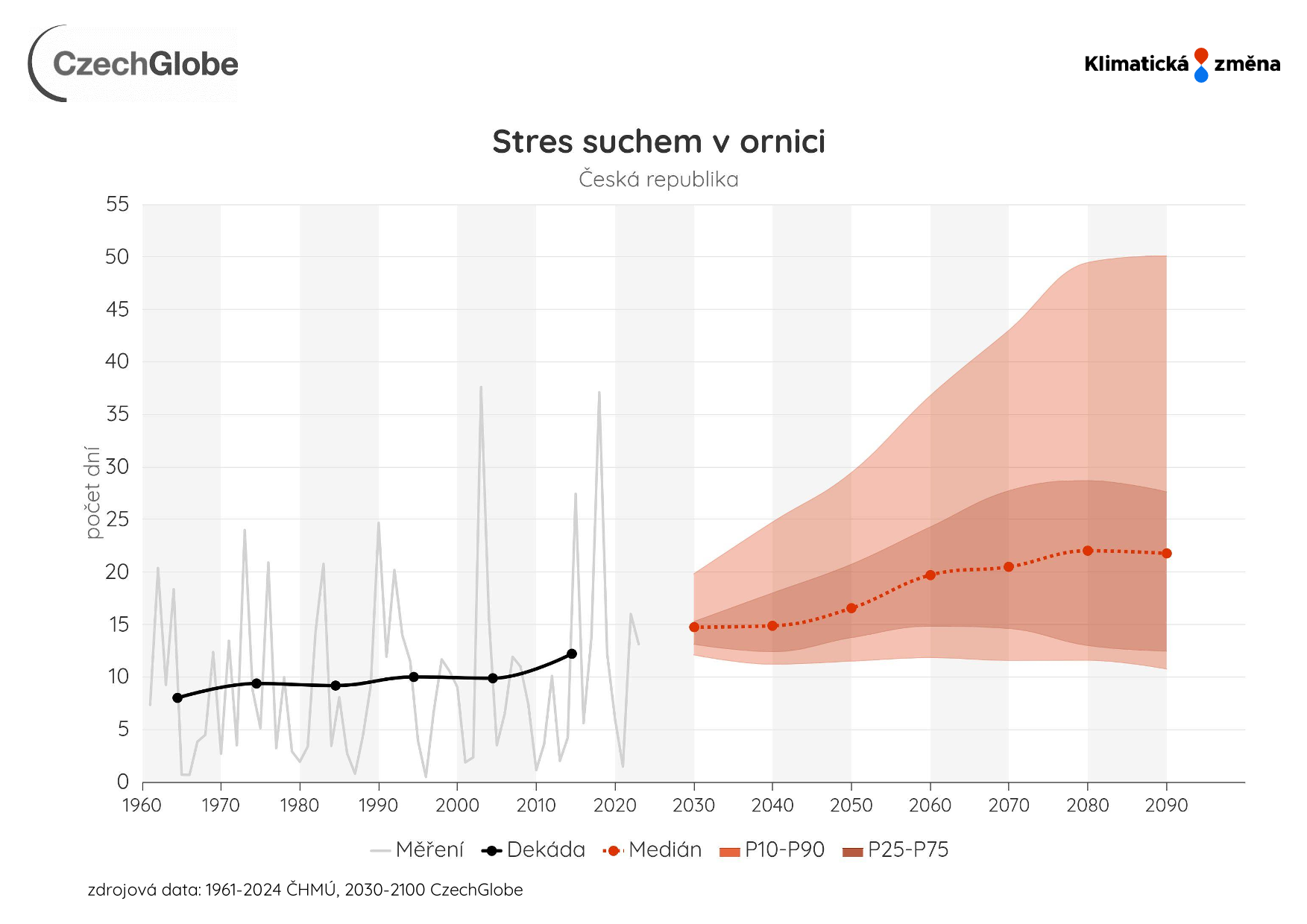 Stres suchem je vyjádřen, jako počet dní za rok s kriticky nízkou zásobou vody (obsah vody pod 30 %) v povrchové vrstvě 0-40 cm.