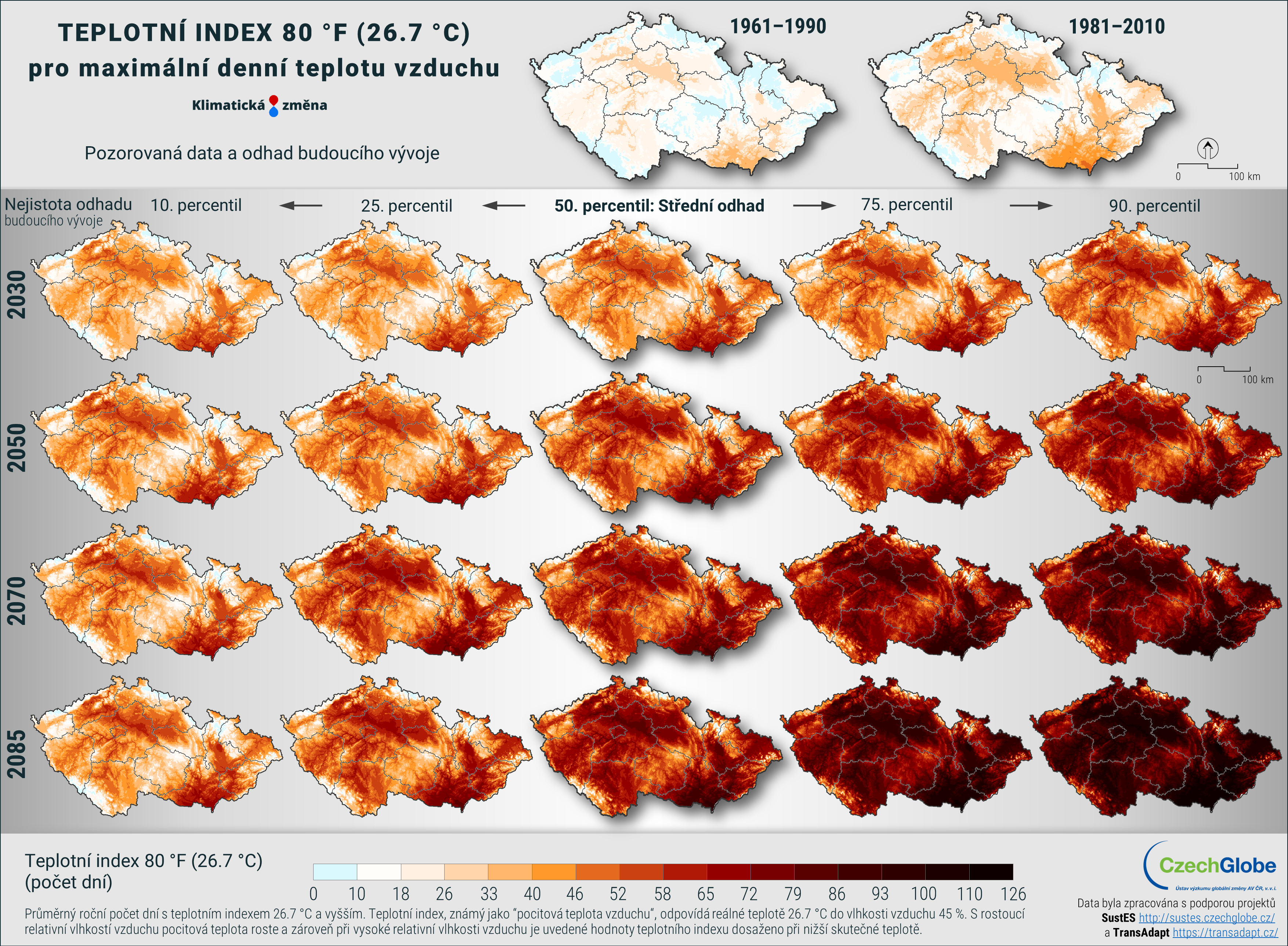Mapa zobrazuje průměrný roční počet dní s teplotním indexem 26,7 °C a vyšším. Teplotní index, známý jako "pocitová teplota vzduchu", odpovídá reálné teplotě 26,7°C do vlhkosti vzduchu 45 %. S rostoucí relativní vlhkostí vzduchu pocitová teplota roste a zároveň při vysoké relativní vlhkosti vzduchu je uvedené hodnoty teplotního indexu dosaženo při nižší skutečné teplotě.