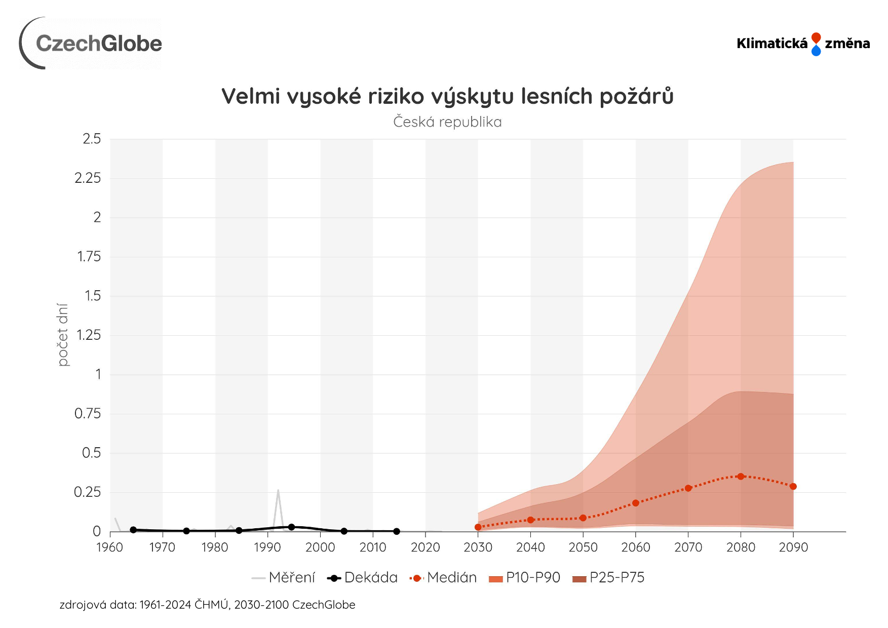 Graf zobrazuje průměrný počet dní za rok s výskytem kategorie 5 (= velmi vysoké riziko).