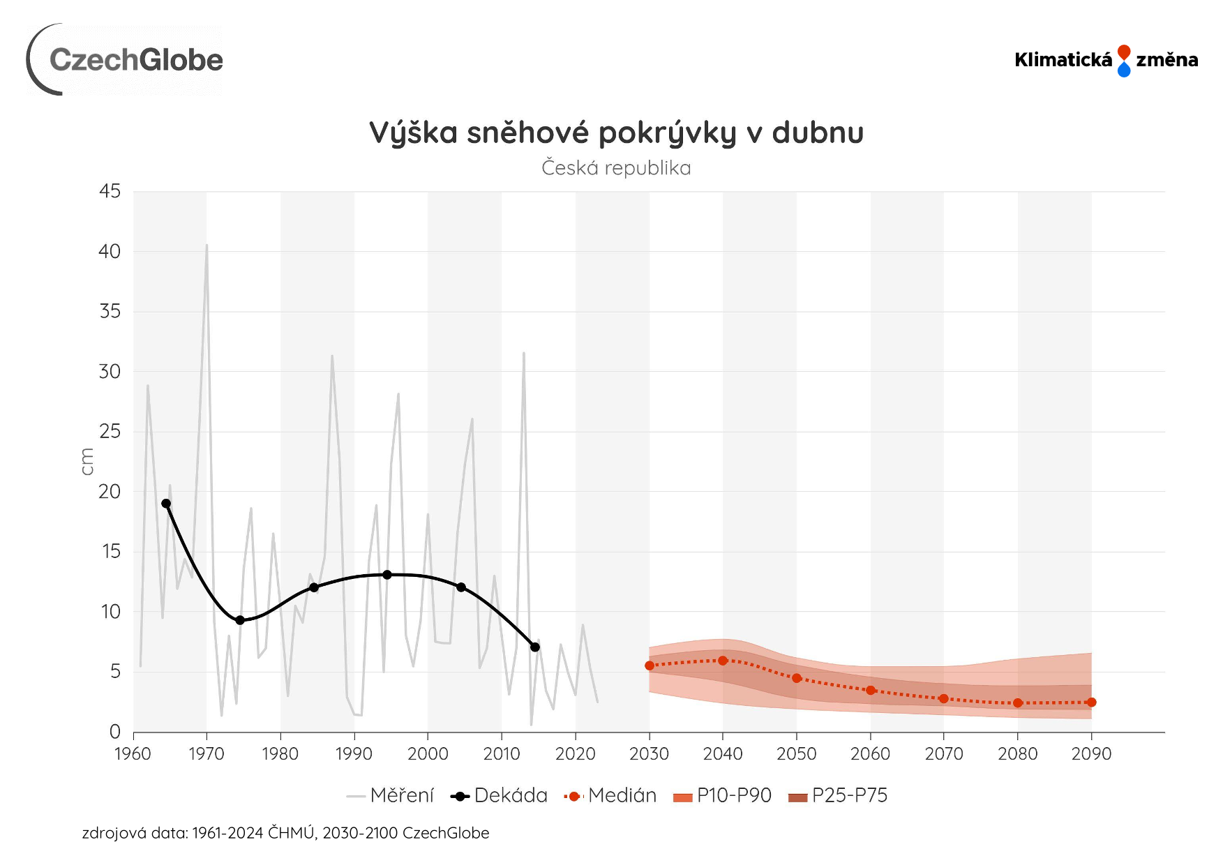 Graf zobrazuje průměrnou výšku sněhové pokrývky 1. dubna (cm).